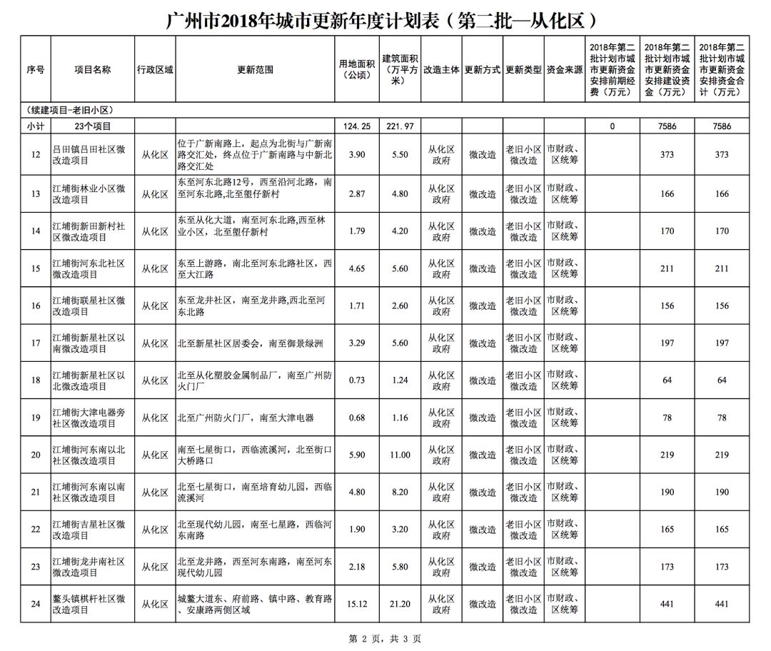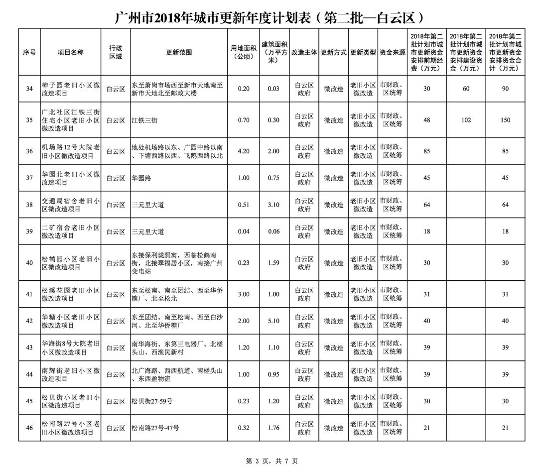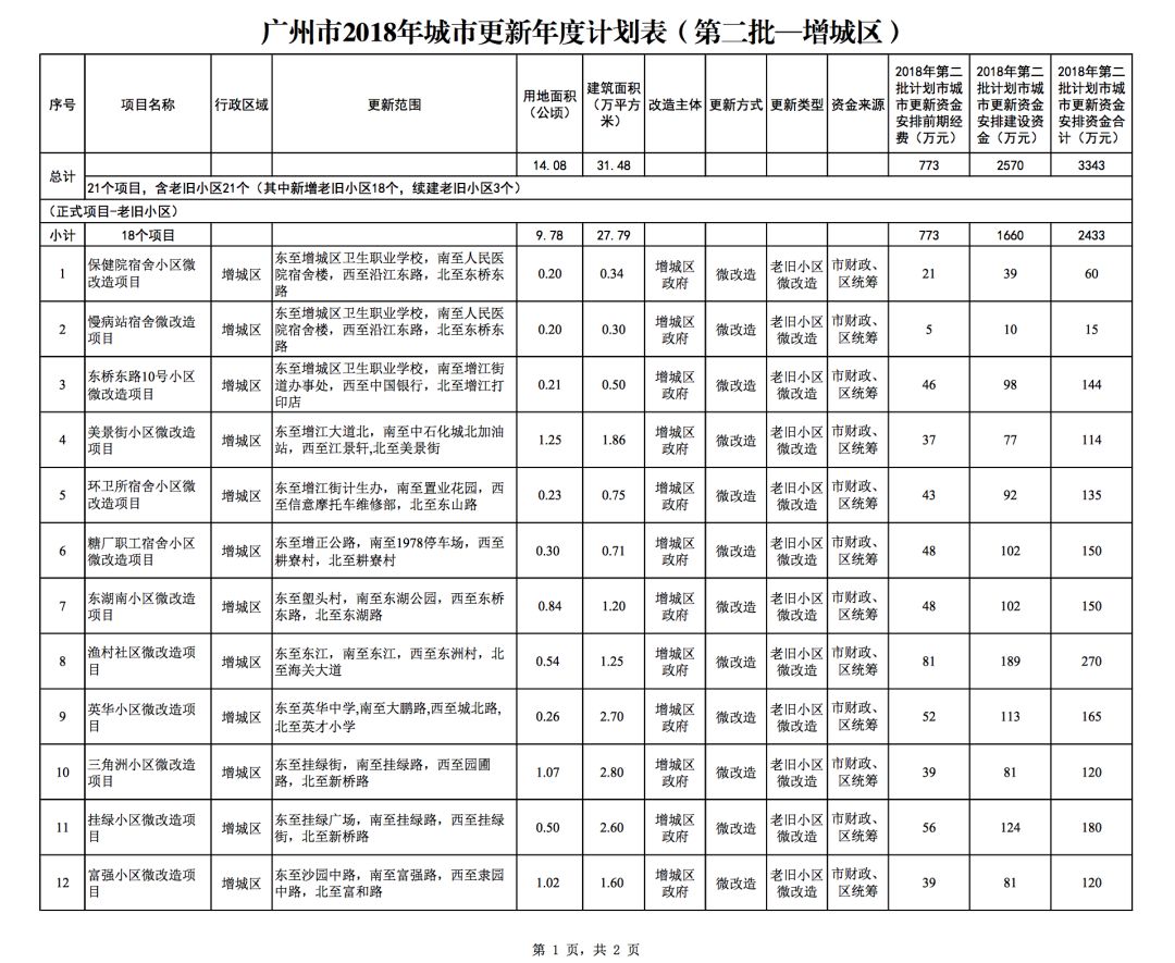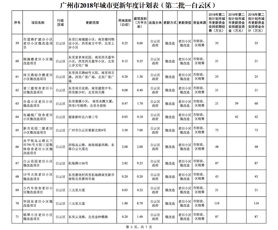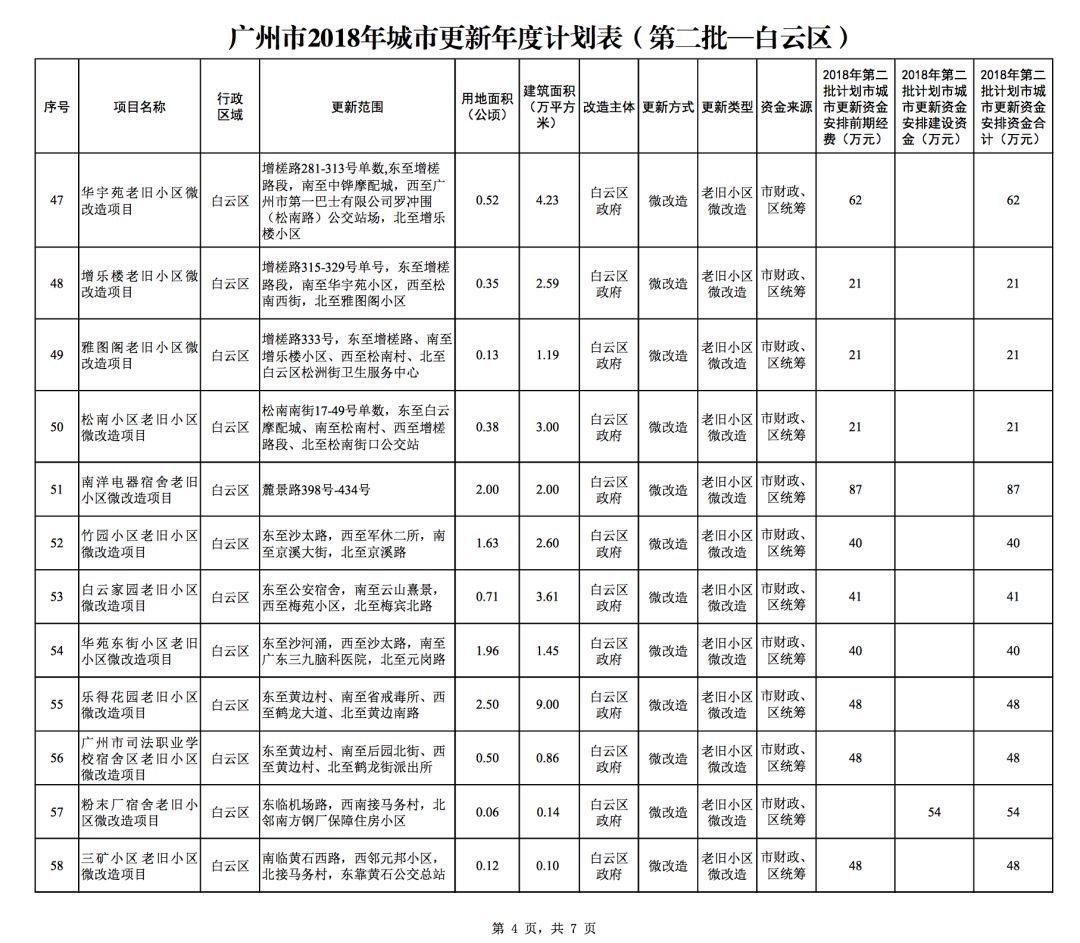 今年5月,市政府审议通过了《广州市2018年城市更新年度计划(第二批)》,列入本次计划的正式项目共计428个、25.93平方公里。其中老旧小区微改造项目422个、24.20平方公里;片区策划项目1个、1.23平方公里;旧村庄综合整治项目1个、0.42平方公里;国有土地旧厂自主改造项目3个、0.06平方公里;土地整备或政府收储项目1个、0.02平方公里。