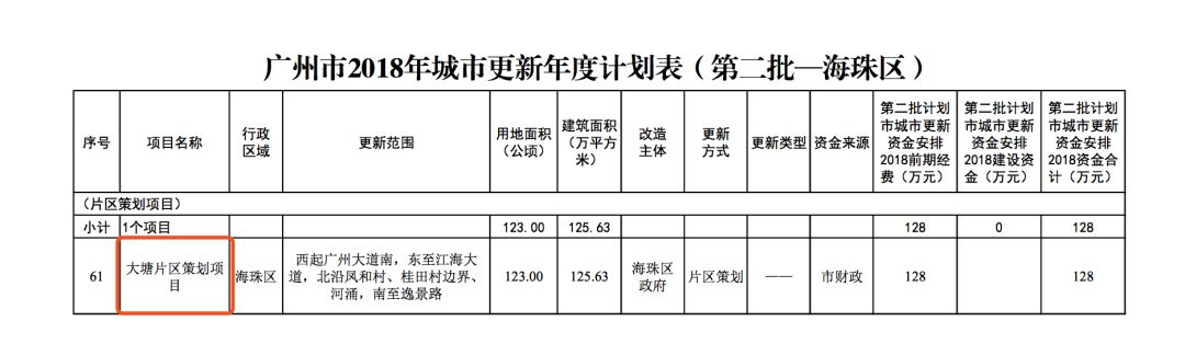 值得注意的是,唯一的片区策划项目,落在了大塘。大塘位于海珠中心,广州城市新中轴线南北贯穿而过,又有地铁3号线大塘站穿过,地理位置优越。经过改造和整治,早先拥堵、脏乱差的城中村局面已有所变化,现在明确要整片策划,前期将投入128万元用于改造,片区内多个小区也纳入改造。以后这里的居民,可是有福了!